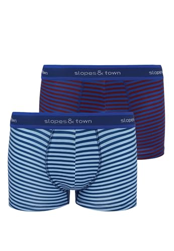 Slopes and Town Bamboo Boxer Shorts Bourgogny/Ljusblå ränder (2-pack), Vinröd ljusblå, S