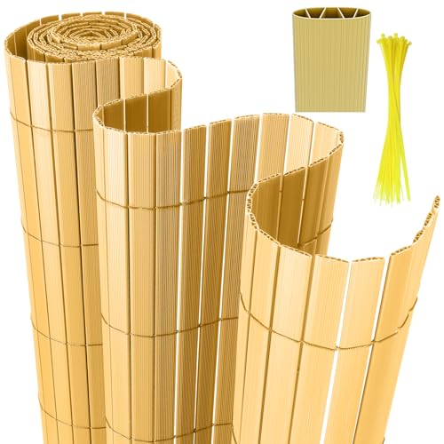 Vigevee PVC insynsskydd, insynsskyddsstaket, 120 x 500 cm, trippel förstärkning inomhus, balkong, insynsskydd med buntband, balkongbeklädnad vindskydd för balkong, trädgård, bambu