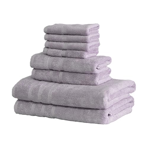 MOSOBAM 8-delad normal bunt – lavendel aura – 700 GSM hotell lyx bambu – Egeisk turkisk kammad bomull, ljuslila handduk