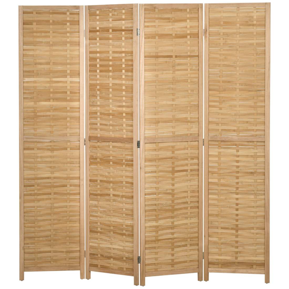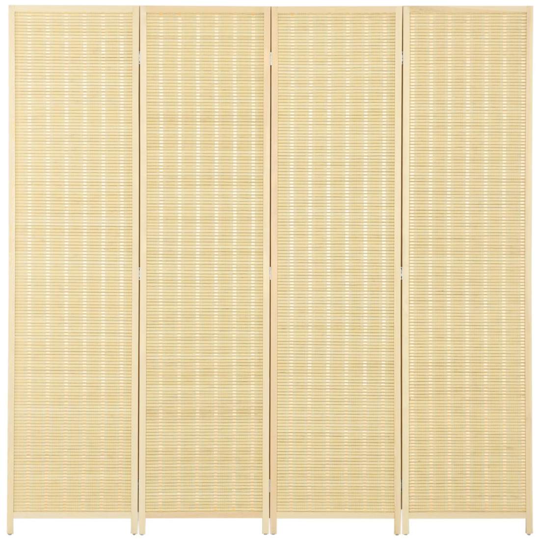 Skärm 4-delad 180 x 180 cm rumsavdelare av bambu, vikbar insynsskydd, rumsavdelare för vardagsrum, naturlig Aosom