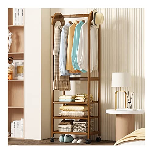 Klädställ med förvaring Klädställ Klädställ med hyllor Kraftig klädställning för sovrum Bambu Klädställ för hängare Kläder Liten klädställning (Färg : Brun, Storlek : 50 *