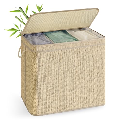 Lifewit 160 l dubbel tvätt hammare med lock, extra stor bambu tvättkorg smutsiga kläder hammare beige