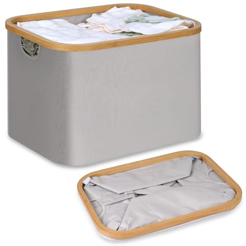 efluky Vikbar tvättkorg, 48 L bambu tvättkorgar, hopfällbar tvättkorg tvätta kläder strykkorgar, ljusgrå hopfällbar tvättkorg