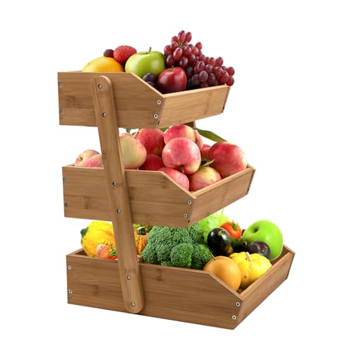 evomosa Fruktkorg 3 nivåer bambu fruktställ för kök, 41 cm hög fruktställ, förvaringshållare, mångsidig stor kapacitet för grönsaksfrukt och mellanmål