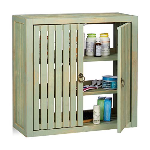 Relaxdays Väggskåp vintage, bambu, 2 dörrar, magnetlås, 2 hyllor, badrum & kök, HBT 50 x 52 x 20 cm, grön