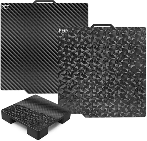 HIKUDIY 257 x 257 mm PET PEO dubbelsidig byggplatta för Bambu Lab X1C/X1/X1E/P1P/P1S/A1, slät diamant PEO kolfiber PET fjäderstålplåt för Bambu Labs 3D-skrivare