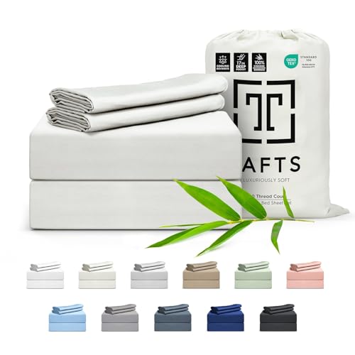 Tafts Sängkläder i 100 % viskos från bambu, bäddset, lyxigt mjuka, silkeslena, svalkande och dubbelstickade lakan, King (elfenbensvit)