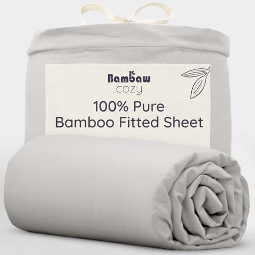 Bambaw dra-på-lakan i bambu | super king dra-på-lakan | temperaturkontroll | allergivänligt lakan | andningsbar tyg | grå – 180 c 200