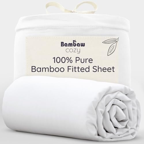 Linenwalas 100 % naturligt bambu, dra-på-lakan med säker elastisk djup ficka - mjuka, svala sängkläder som är perfekta för hudvård - (King, vit)
