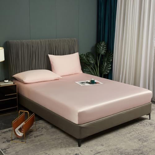 Bambu spännlakan 90 x 200 cm rosa antibakteriell mjuka spännlakan kylande 100 % bambu dra-på-lakan set resårsäng lakan linne 90 x 200 dra-på-lakan för upp till 25 cm madrass