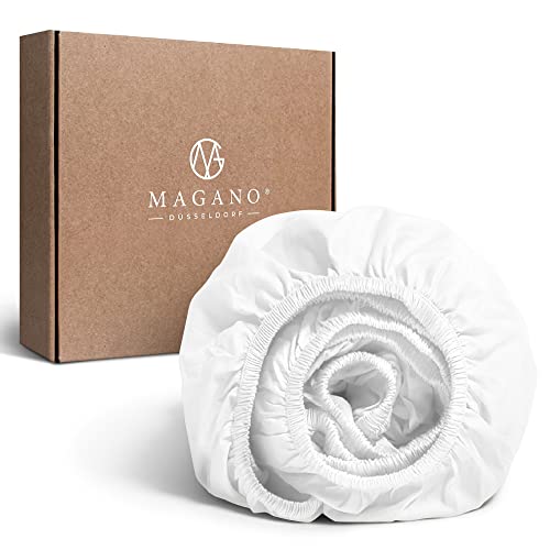 MAGANO® Lyxiga resårlakan 180 x 200 resårsäng bäddmadrass vit | bambu och bomull satin | 400 TC premiumkvalitet | termoreglerande | dra-på-lakan 180 x 200 cm | vit