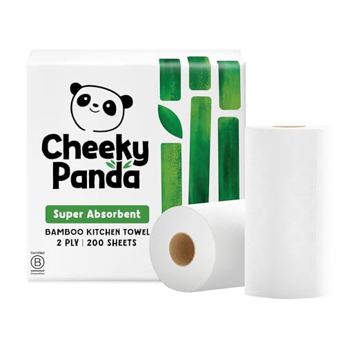 The Cheeky Panda, köksrulle i bambu | 2 köksrullar – 200 superstarka lakan | naturligt starka och absorberande plastfria kökshanddukar