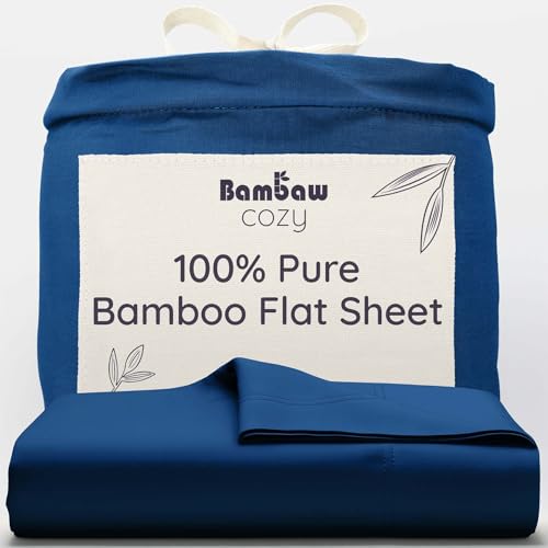 Bambaw Dubbellakan, sängkläder i bambu, 240 x 290 cm, dubbelt platt lakan, lyxiga sängkläder, håll dig sval på natten, mot dammkvalster, madrasskydd, supermjuk filt, marinblått