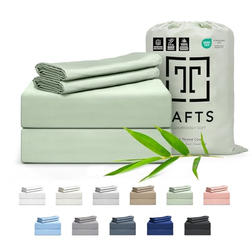 Tafts Sängkläder i 100 % viskos från bambu, bäddset, lyxigt mjuka, silkeslena, svalkande och dubbelstickade lakan, King (salviagrön)