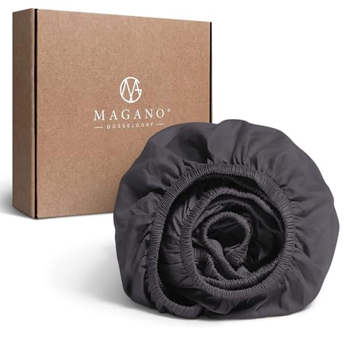 MAGANO® Lyxiga resårlakan 180 x 200 resårsäng bäddmadrass grå | bambu och bomull satin | 400 TC premiumkvalitet | dra-på-lakan 180 x 200 cm | antracit mörkgrå