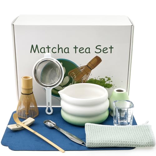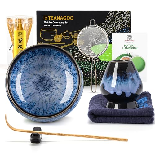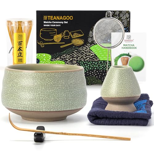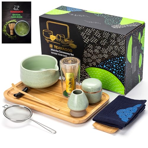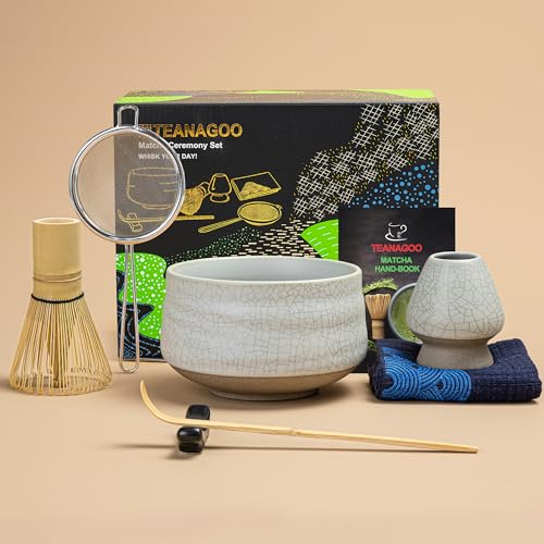 TEANAGOO Matcha Tea Set, Japansk Tea Set, Matcha Skål, Matcha Bambu Visp, Spade, Durkslag, Matcha Visp Hållare, Matcha Visp Set N15