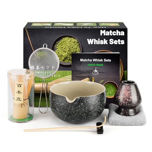 TEANAGOO Japansk teservisp (7 stycken) Matcha visp set Matcha skål med hällare Bambu Matcha Visp (Chasen) Spade (Chashaku) Matcha Visp Hållare Te Förberedelseset. N17
