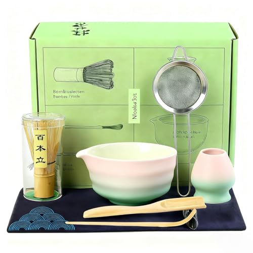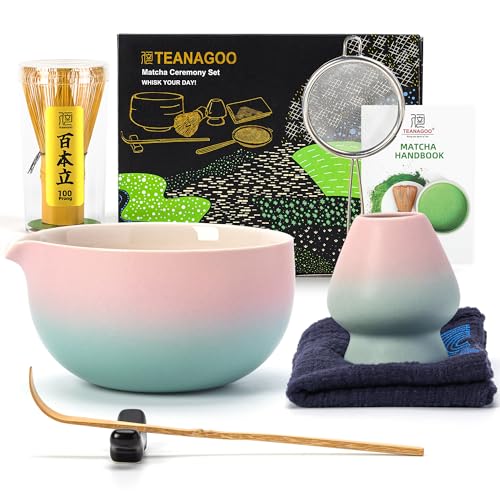 TEANAGOO Japanese Matcha Set (7 stycken), Matcha Visp, Mtacha Set, Matcha Bowl med Pourer, Bambu Matcha Visp, Cha Chavel, Chasel (Chashaku), Visphållare N25, Gradient, TG-N25...