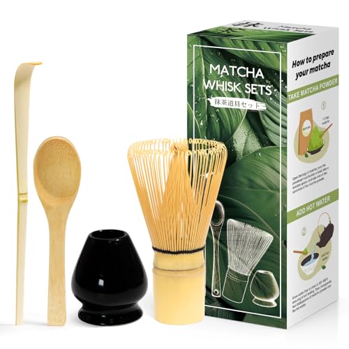 TEANAGOO Matcha-set, matcha-visp-set, bambu matchande visp (chashaku), sked (chashaku), matcha visphållare, teförberedelseset. O38, pulversats med grönt te. Tebricka