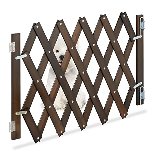 Relaxdays Hundsäkerhetsgrind, töjbart staket upp till 108,5 cm, 47,5–60 cm hög, bambu, brun