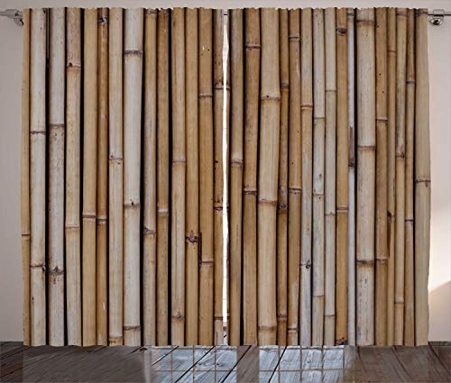ABAKUHAUS Arkitekturgardiner, torr bambu staket, inredning, accent inredning set med 2 paneler, 280 cm x 175 cm, kakao och blek taupe