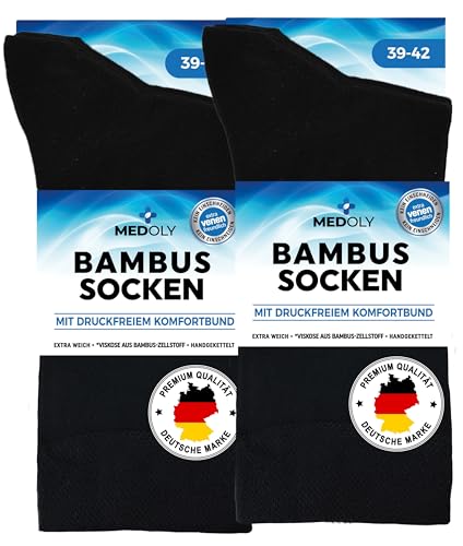 Bambu strumpor (6 par) utan elastisk linning, med 72 % bambufion, mot svettfötter – bambustrumpor män och kvinnor, 6 x svart, 39-42 EU