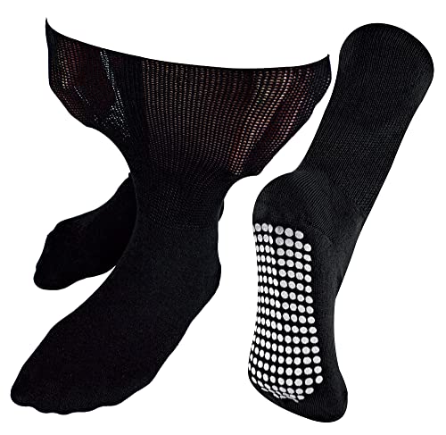 Dr.Socks unisex extra bred bambu ödem strumpor med grepp för svullna ben, Svart, 47-49 EU