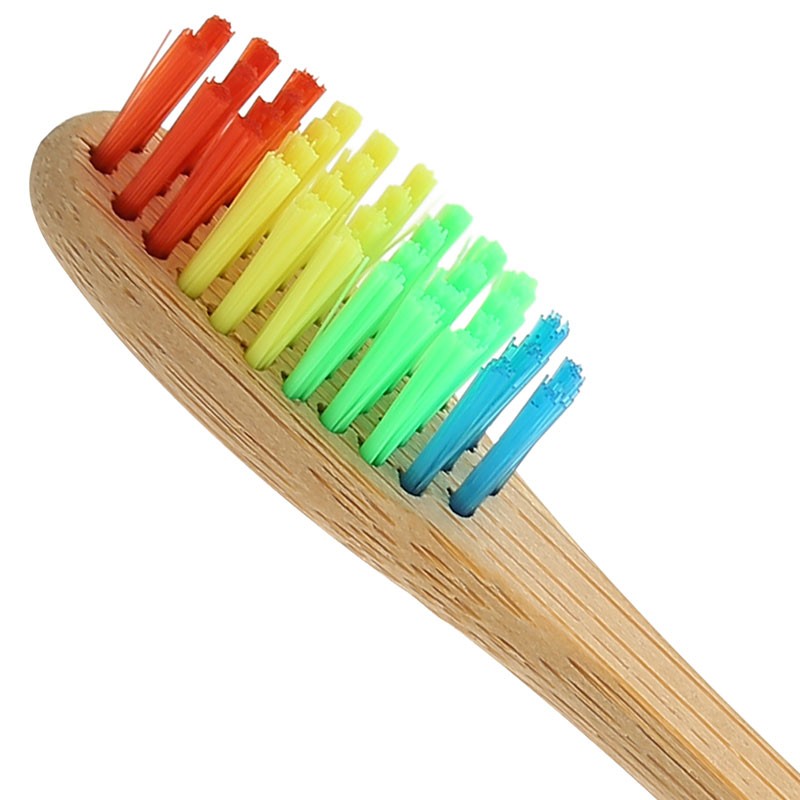 Bambu tandborste - Ekologisk - Mjuka regnbågsfärgade borst