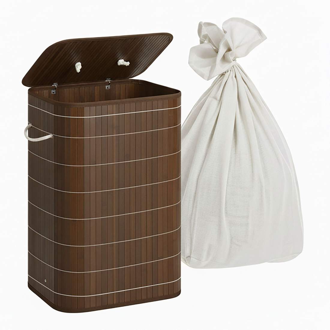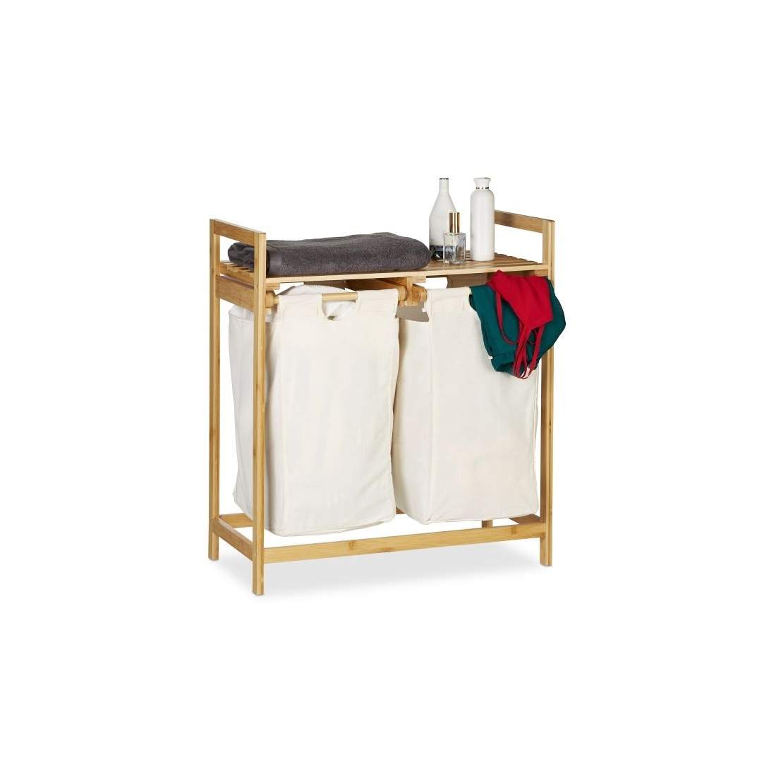 Bambu tvättkorg – 2 fack, avtagbara påsar