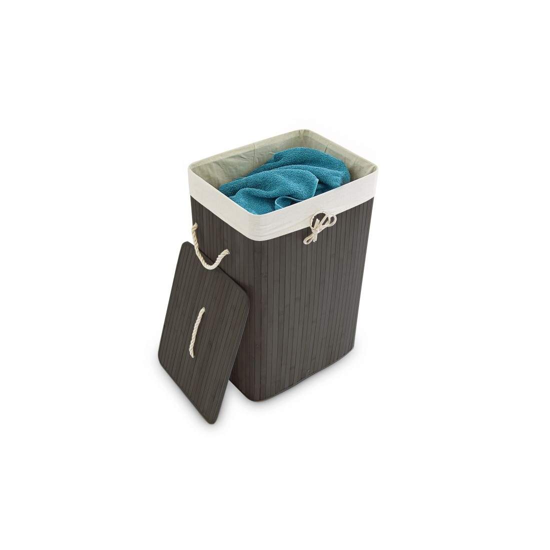 Rektangulär grå bambu tvättkorg 40x30x60 cm