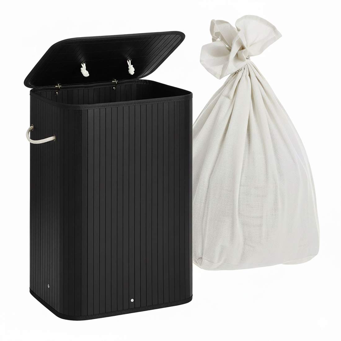 Bambu Tvättkorg 55L med Lock & Tvättväska