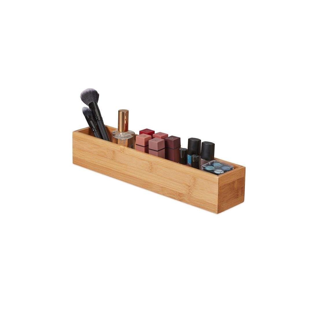 Relaxdays Bambu förvaringsbox smal förvaringslåda utan lock, HBT 9,5 x 18 x 9 cm, bambulåda kök, badrum, kontor, natur