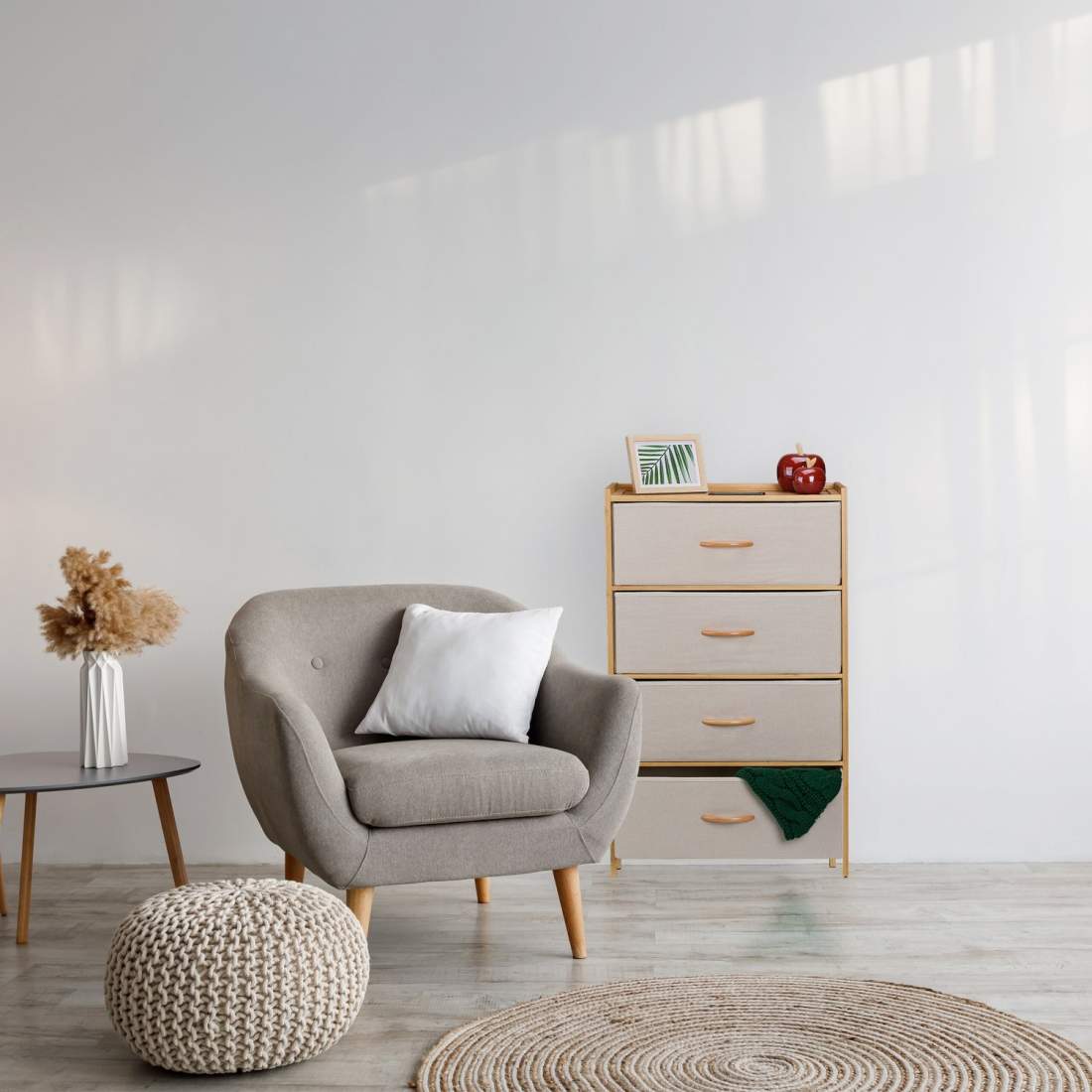 Bambulåda – 4 tyglådor, kompakt förvaring