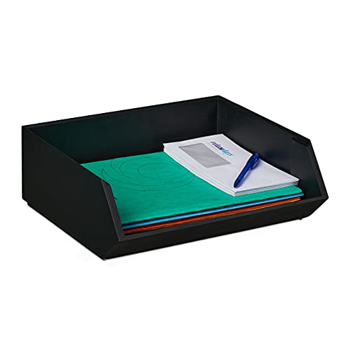Relaxdays Skrivbordsförvaring, 1 fack, bambulåda stapelbar, multifunktionell, H x B x D: ca 12,5 x 35 x 31 cm, antracit