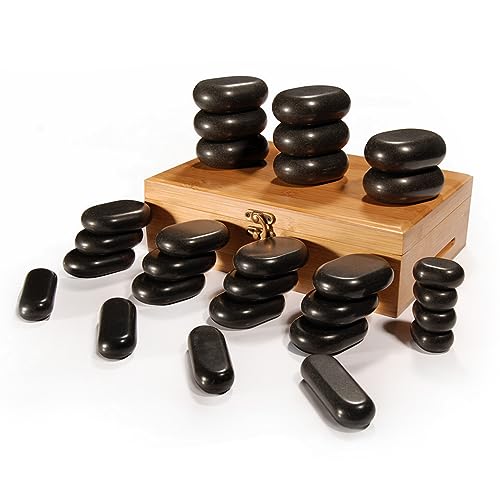 Master Massage Hot Stone Hot Massage Stones i dekorativ bambulåda paket med 60