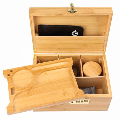 OZCHIN Stor bambulåda med kombinationslås dekorativ låda för hem bra presentval förvaringslåda med förvaringsburk, bricka, återförslutningsbara väskor med mera