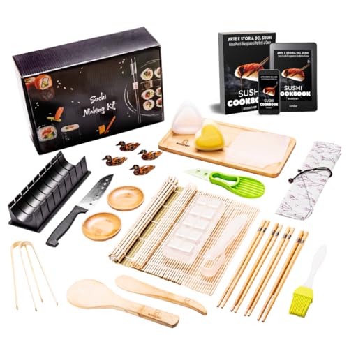 Brodevet Sushi-kit 2025 - 29 stycken med praktisk guide, receptbok, Onigiri-form, bambumatta, sushi GB, kinesisk pinne och tillbehör för sojasås