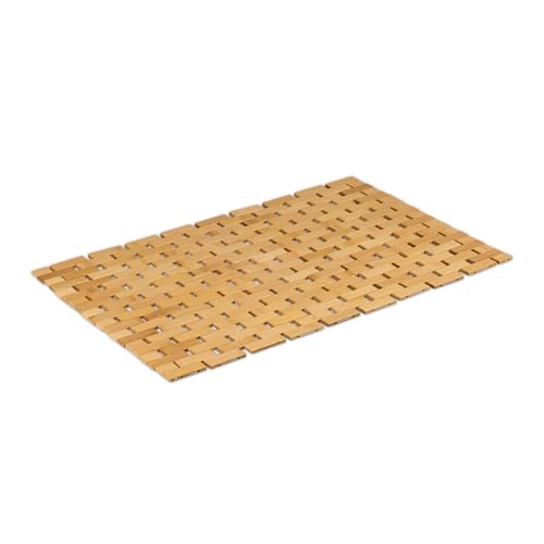 Relaxdays Bambumatta, för badrum, stoppare, hygienisk, fuktbeständig, dörrmatta 40 x 65 cm, naturfärger