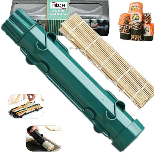 RIMAFI Köksredskap, komplett hemsushi-tillverkningssats, gör-det-själv bazooka sushimaskin med naturlig bambumatta, sushirullmaskin, sushi making kit.