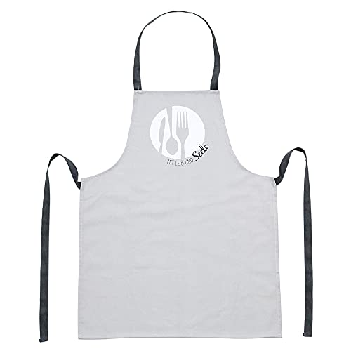 Dekohelden24 Matlagningsförkläde/bakförkläde med midjeband, tillverkat av 100% bomull, produktmått (utan band) 78 x 68 cm, motiv: med kropp och själ, förkläde