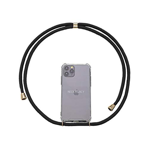NECKLACY Mobiltelefonkedja för upphängning – för iPhone 7/8 – fodral/mobiltelefonfodral med band för upphängning – bärrem hals med snöre – smartphone-halsband, elegant svart