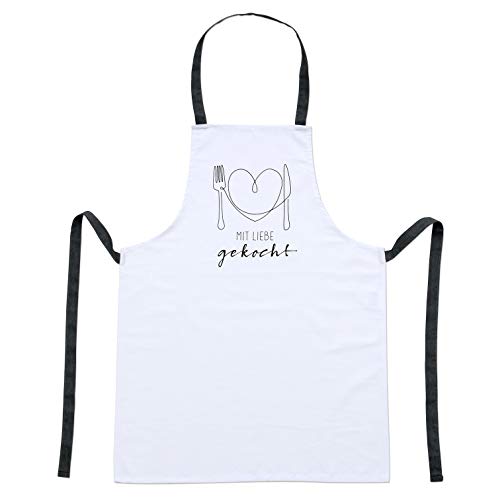 Dekohelden24 Matlagningsförkläde/bakförkläde med midjeband, tillverkat av 100% bomull, produktmått (utan band) 78 x 68 cm, motiv: kokt med kärlek, förkläde