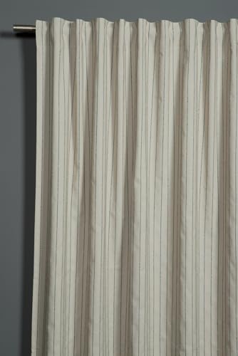 Sehlbach Färdigsydd scarf med gardinband, Vertikala vävda ränder, Beige, 140 x 245 cm Gardiner, Ogenomskinligt tyg, Integrerat band, Dolda öglor, Öko-Tex certifierad, Förkortningsband