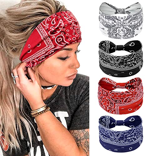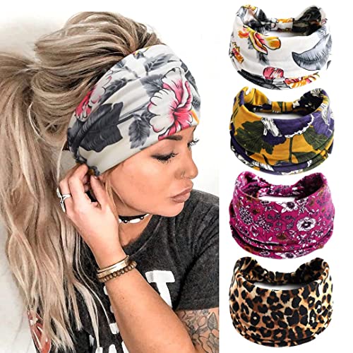 Kavya Hårband Kvinna Headband Sommar Pannband Dam Boho Wide Hair Band Women Flickor Head Band Yoga Hair Scarf Hårsmycke 4 st (Elegans)