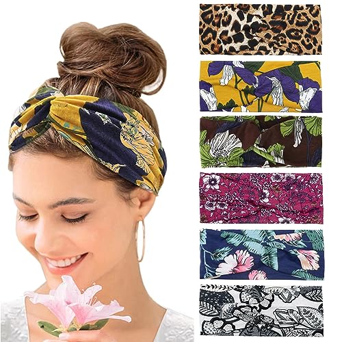 Kavya Hårband Kvinna Pannband Dam Boho Headbands Head Band Yoga Wide Hair Band for Women Flickor Sommar Hair Scarf Hårsmycke 6 st (Mildhet)