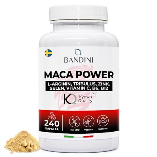 Bandini® MACA POWER Peru, 60 kapslar 100% vegansk, högdos komplex med tribulus, arginin, zink, vitamin B6 och B12 - fysisk och mental trötthet, energi, sport - tillverkad i Italien