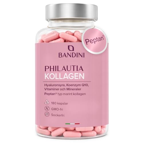Bandini® Peptan® Kollagen och hyaluronsyra 180 kapslar + vitamin C, biotin, zink, coenzym Q10 och selen, marin, hydrolysat typ 1, hud, leder, benelasticitet, inga tungmetaller