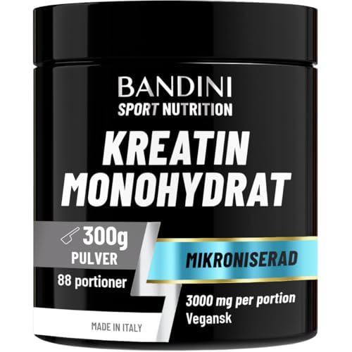 Bandini® Micronized Creatine Monohydrate i 100% rent pulver - Tillskott för träning, sport, gym och före ansträngning - Inkluderar dispenser - Vegansk - Baserat på kreatinmonohydrat
