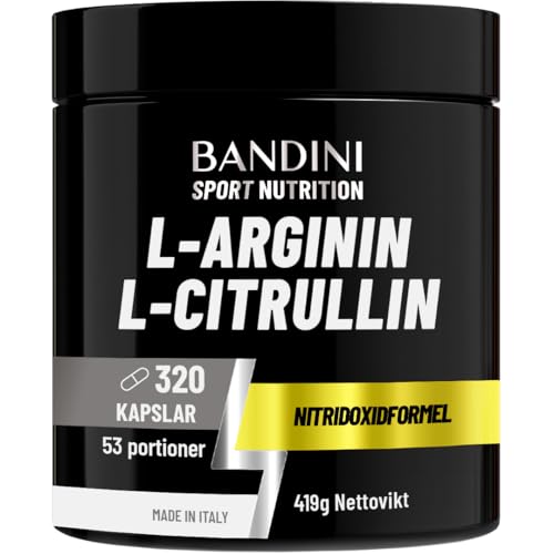 Bandini® L-Arginin + L-Citrullin 320 kapslar (1100 mg per kapsel), Arginin + Citrullinmalat för preworkout, kosttillskott för gym, uthållighet, muskelåterhämtning, semi-essentiella aminosyror