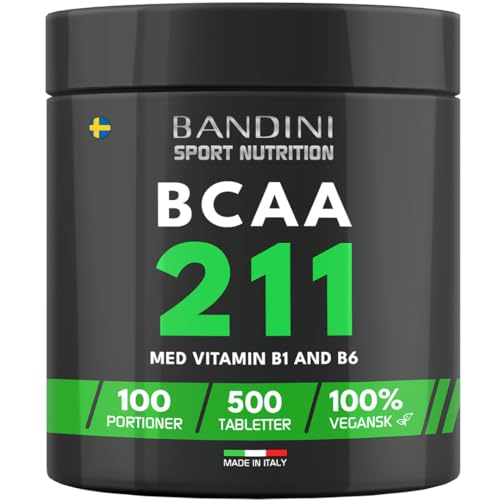 Bandini® BCAA 4.1.1 500 tabletter, grenade aminosyror BCAA 4:1:1, leucin, isoleucin, valin med vitamin B1 och B6, vegan, kosttillskott före och efter träning